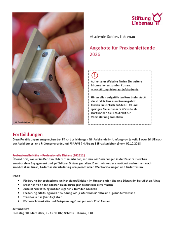 Angebote für Praxisanleiterinnen und Mentoren 2026